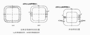 方鋼管按下圖切取拉伸或彎曲樣坯。當機加工和試驗能力允許時,應按圖(a)取樣。沖擊樣坯應按下圖切取。