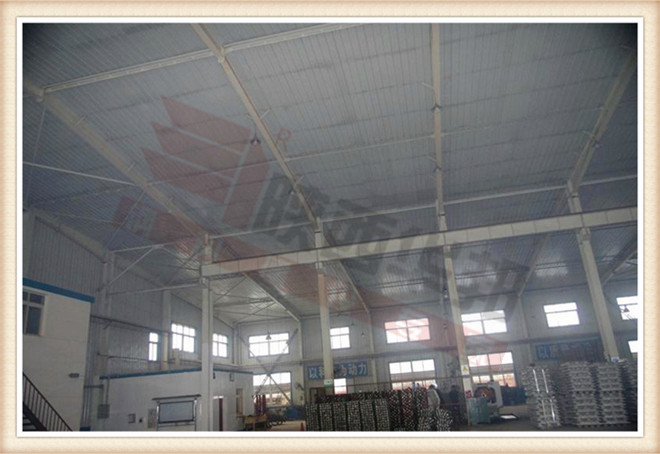 項目簡介:該工程長75米、寬18*2=36米、高10.5米、建筑面積2700平方米。門式鋼架結構、圍護采用現場復合的彩鋼壓型板。
