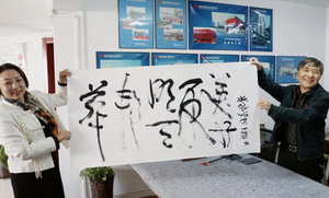 會(huì)后,王雋鋒副會(huì)長(zhǎng)揮毫“華邦明天更美好”,以此祝愿華邦鋼構(gòu)繁榮發(fā)展,更上一層。